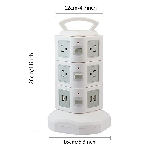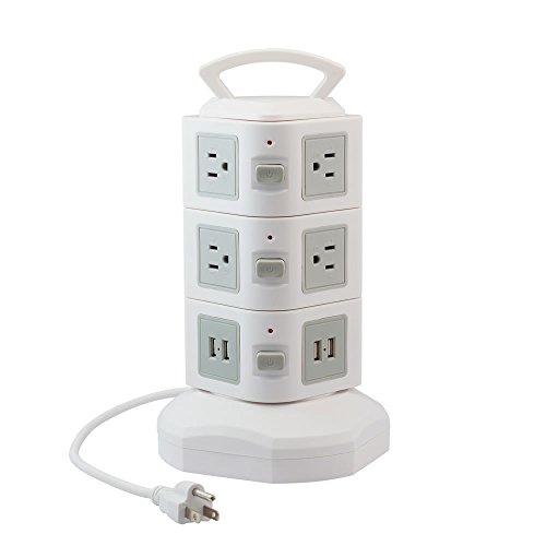 - EXCEPTIONAL DESIGN - Our power strip vertical tower design has a flexible line of 6.5-foot power cable wire that can be extended using your hand control which organize your place and saves space in your working area. A durable handle on the top for hanging or for your carrying convenience.