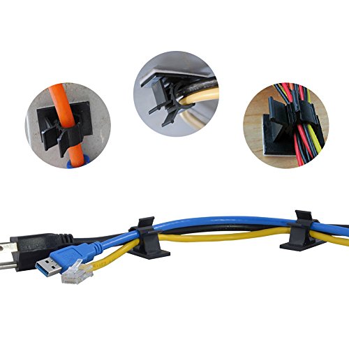 FireBee Cable Clips Wire Clips Desk Wall Cable Wire Clips Computer Electrical Cord Cable Tie Drop (Black, 60 PCS)