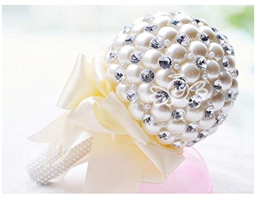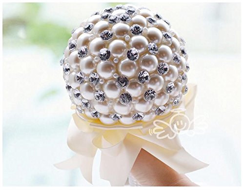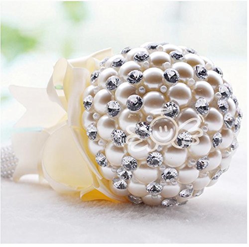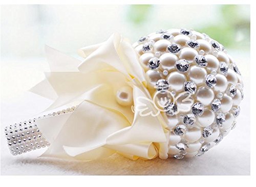 - Title : Hestian 5" Bridesmaid Bouquet Luxury Handmade Romantic Big Pearls and Deluxe Rhinestones Bridal Wedding Bouquet Silk Rose Hand Tie (beige)