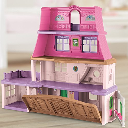 Ding-dong! Anybody home? In the Fisher-Price Loving Family Dollhouse, you’ll find Mom, Dad and Baby ready to invite you into their spacious, stylish 4-floor home. Little ones will love all the special touches inside, like a 4th floor balcony and 2nd floor patio off the kitchen! There are 6 spacious rooms to explore, but let’s take the side entrance back outside (Look—a doggy door!) to see the flip-out swing set with a sweet seat for Baby.Feature