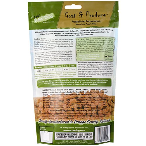 -. Binding : Misc. -. Brand : OC RAW DOG® -. EAN : 0095225853012 -. Feature : Versatile; great as is or rehydrated; a treat or a complete meal. / Limited ingredient list, may be beneficial to pets with food sensitivities. / All-natural, complete and balanced freeze-dried raw nutrition. / All varieties are formulated to meet the nutritional levels established by the AAFCO Dog Food Nutrient Profiles for all life stags. / This product is currently restricted in the state of Kentucky. Any orders with a ship to address in Kentucky will be cancelled. -. Label : OC RAW DOG® -. Manufacturer : OC RAW DOG® -. PackageQuantity : 1 -. ProductGroup : Pet Products -. ProductTypeName : PET_SUPPLIES -. Publisher : OC RAW DOG® -. Studio : OC RAW DOG® -. Title : Freeze Dried Meaty Rox, Goat, 5.5 oz -. UPC : 095225853012