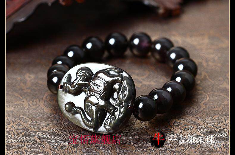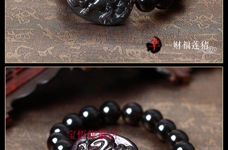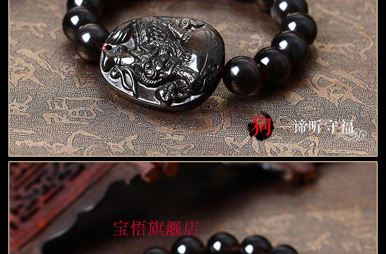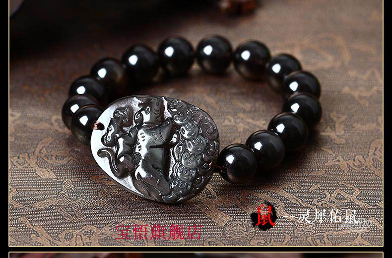 开光灵犀佑鼠黑曜石手链属鼠开运吉祥物七星堂子遥辰禄手链