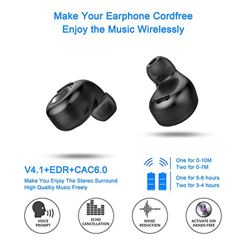 -. Title : Bluetooth Headphones,Besyoyo Mini Wireless Earbuds Stereo Bluetooth V4.1 Headset with Charging Box,Sweatproof Noise-Canceling Wireless Earpiece Build-In Mic for iPhone and Android Phones