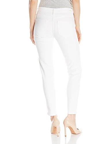 Ankle length skinny jean in lightweight cotton denim has destruction detail. A touch of spandex provides great fit and recovery, even after multiple washings. Comes in crisp bright white that is perfect for spring and summer.Feature