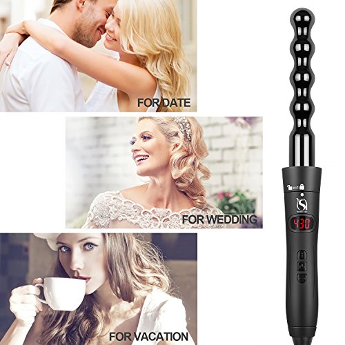 LCD HEAT SETTING: Choose the temperature from 140-430F meets any hair types, PTC fast heating easy to get shiny curls in mins.