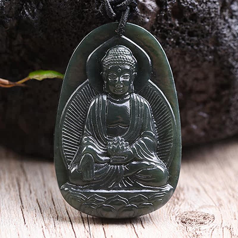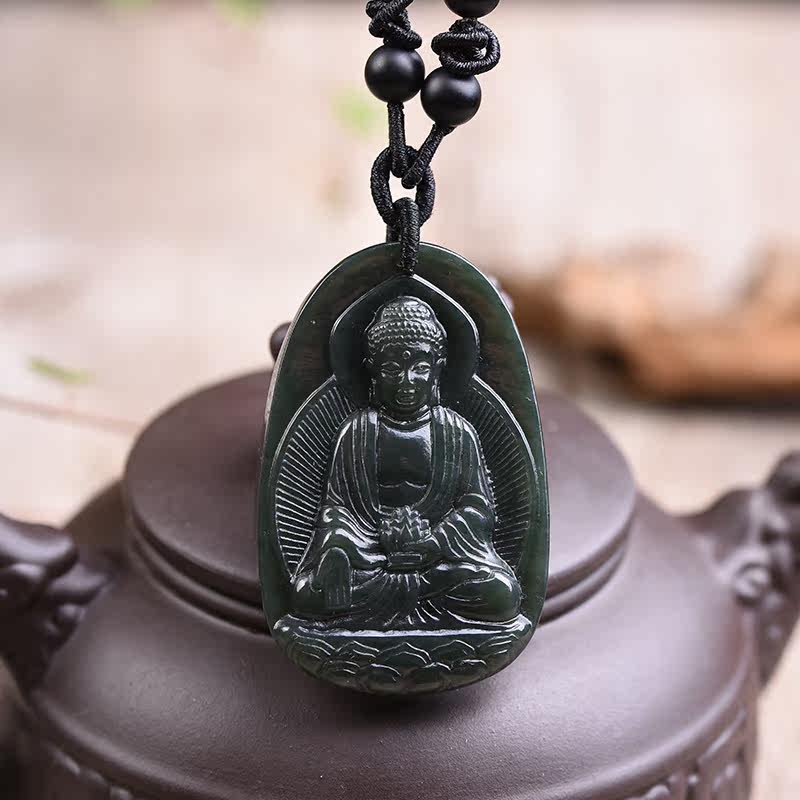 开光和田青玉大日如来吊坠 生肖属猴属羊本命佛守护神项链男女
