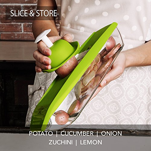 ✅ SAVE TIME AND EFFORT: This hand-held mandoline slicer will cut your prep time in half, by cutting through potatoes, onions, cheese and vegetables with ease. Your kitchen will be clean and tidy thanks to the container.