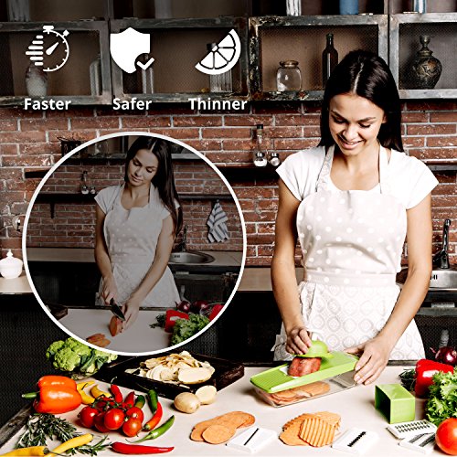 ✅ SAFE – USING: Featuring a safe finger guard that securely grips on the veggies to protect your hands from accidental cuts, this professional kitchen slicing tool will let you cut your vegetables to perfection effortlessly!