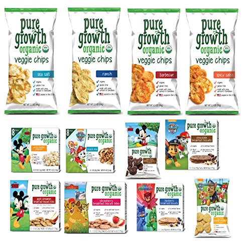 -. Feature : Taste of PGO - Healthy Lunchbox Snack Pack Contains: White Cheddar Popcorn (4 x .5oz bags), Snack Mix (2 x 1oz), Apple Cinnamon and Strawberry Breakfast Biscuit Bites (1 x 1.2oz bag of each flavor), Chocolate and Blueberry Breakfast Biscuits (1 x 1.2oz pouch of each flavor), Crispy Rice Squares (4 x 0.77oz bars), Chocolate Oatmeal Bites (1 x 1.2oz pouch), Chocolate Mickey Mouse Animal Crackers (1 x 7oz bag), Ranch and BBQ Veggie Chips (1 x 1oz bag of each flavor). / SNACKS FOR EVERY CRAVING - White Cheddar Popcorn, Snack Mix, Apple Cinnamon/Strawberry Breakfast Biscuit Bites, Chocolate/Blueberry Breakfast Biscuits, Crispy Rice Squares, Chocolate Oatmeal Bites, Chocolate Animal Crackers, Ranch/BBQ Veggie Chips / SAVE TIME - We’ve got you covered for an easy breakfast, tasty lunch box treat, grab-and-go snack, camp care packages and road trips / AT HOME CONVENIENCE - 20 Pure Growth Organic snacks in individual and shareable sizes delivered right to your door, so you never to have make a last minute run to the store. Stock up on organic snacks for the whole week with one click / GREAT FOR THE WHOLE FAMILY - Keep the pantry stocked with snacks for every craving and occasion to satisfy the whole family from breakfast to dessert / SNACKS FILLED WITH ALL OF THE GOOD STUFF & NONE OF THE BAD - All Pure Growth Organic snacks are USDA Organic certified, Kosher, and baked & popped in USA. NO GMOs, high fructose corn syrup, and artificial colors or flavors. • SNACKS FOR EVERY CRAVING - The Taste of PGO Sample Box comes with a mix