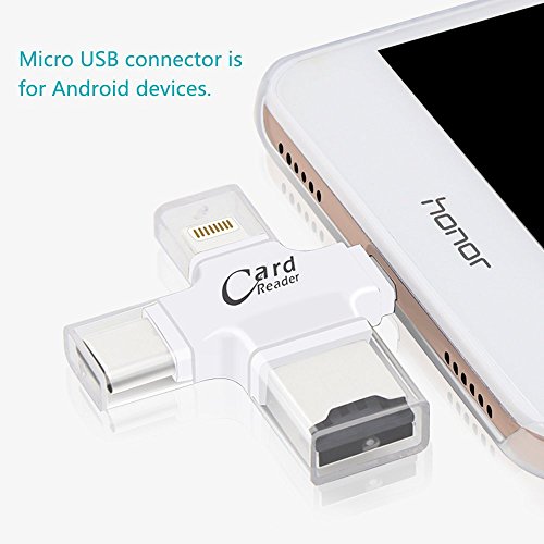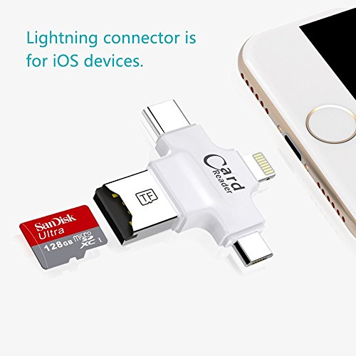 -. Title : Ayshone TF Card Reader for iPhone iPad Android Type-C phones/Mac/PC,4-in-1 Micro SD Card Reader,with Type C , Lightning, micro USB and USB Connector