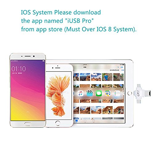 -. Feature : Lightning devices must download Free Strong APP Named IUSB Pro. / Interfaces: Lightning connector for IOS device. Micro USB connector for Android device. USB Type-C connector for Mac. USB connector for PC. / Support wide range of formats for Documents, Photos, Videos and Music; Watch popular-format videos and photos directly from the drive. / Support up to 128G micro SD card(NOT Included). Reading speed: 20~27M/S; Writing speed: 11~20M/S / Package include: 1x micro SD card reader. Micro SD card does not included.