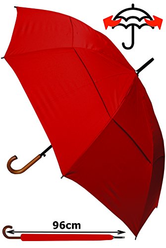 -. Brand : COLLAR AND CUFFS LONDON -. ClothingSize : One Size -. Color : Candy Red -. Department : Mens -. Feature : YEARS OF RESEARCH AND DEVELOPMENT - After years of designing and testing brollies, we understand what makes a great umbrella; we've done the research so you don't have to! There are four really important factors to look out for. 1) A STRONG FRAME WITH FIBRE GLASS, 2) A STRONG CANOPY THAT'S BIG ENOUGH TO COVER YOU, 3) AN AUTOMATIC MECHANSIM ALLOWING ONE HANDED OPERATION and 4) EXCEPTIONAL CUSTOMER SERVICE YOU CAN RELY ON, EVEN AFTER OUR 30 DAY GUARANTEE. We explore these four factors below. / 1) A STRONG FIBRE GLASS FRAME - Our unique umbrellas are STRONG as we only use superior components and highly skilled Technicians. Our UltraFlex Frame Technology gives you both STRENGTH and FLEXIBILITY. Even if gusts reach 50mph+, our design allows the umbrella to flip to regulate pressure. Then our fibre glass ribs return to their original position TIME AFTER TIME. This is what "windproof" means; never settle for less. Each rib and stretcher are highly engineered to give you RELIABILITY. / 2) A STRONG CANOPY THAT'S BIG ENOUGH TO COVER YOU - This umbrella has a VENTED DOUBLE CANOPY designed to combat inversion damage. Two overlapping canopy layers have vents which allow gusts of wind to pass through the umbrella reducing the risk of inversion. We only use HIGH QUALITY, WATERPROOF FABRICS that are strong, lightweight and flexible so they work in harmony with the frame. When open the canopy has a generous 134cm arc and a 110cm diameter. / 3) AUTOMATIC MECHANISM - This umbrella opens automatically so you can react to a downpour in seconds! The great thing about an automatic mechanism is that you can open the umbrella with just one hand, very important when every second counts and you're carrying half a dozen shopping bags! When closed, the umbrella measures 96cm from tip to handle. / 4) EXCEPTIONAL CUSTOMER SERVICE - An exceptional customer experience is central to everything we do. You can buy with confidence with our 30 day money-back guarantee. Even outside this period, we will always do our best to help. We never take your custom for granted; we have many loyal customers who come back to us again and again as we look after them! -. Model : CCLSTORMPUMB10221 -. ProductGroup : Apparel -. ProductTypeName : LAGE -. Size : One Size -. Title : COLLAR AND CUFFS LONDON - Windproof EXTRA STRONG - StormDefender City Umbrella - Vented Canopy - HIGHLY ENGINEERED TO COMBAT INVERSION DAMAGE - Auto Open - Solid Wood Hook Handle - Large - Candy Red