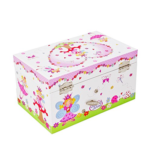 The adorable fairy and magical creature illustrations and the sweet spinning fairy inside make this lovely kids music box the perfect gift for children who have big imaginations.