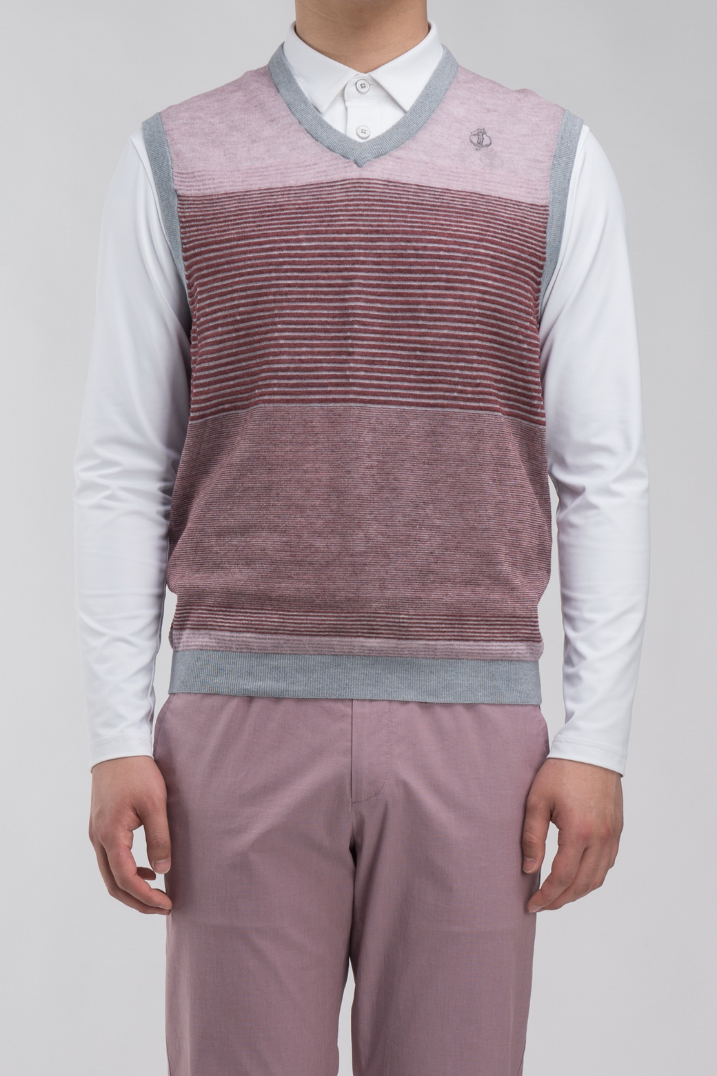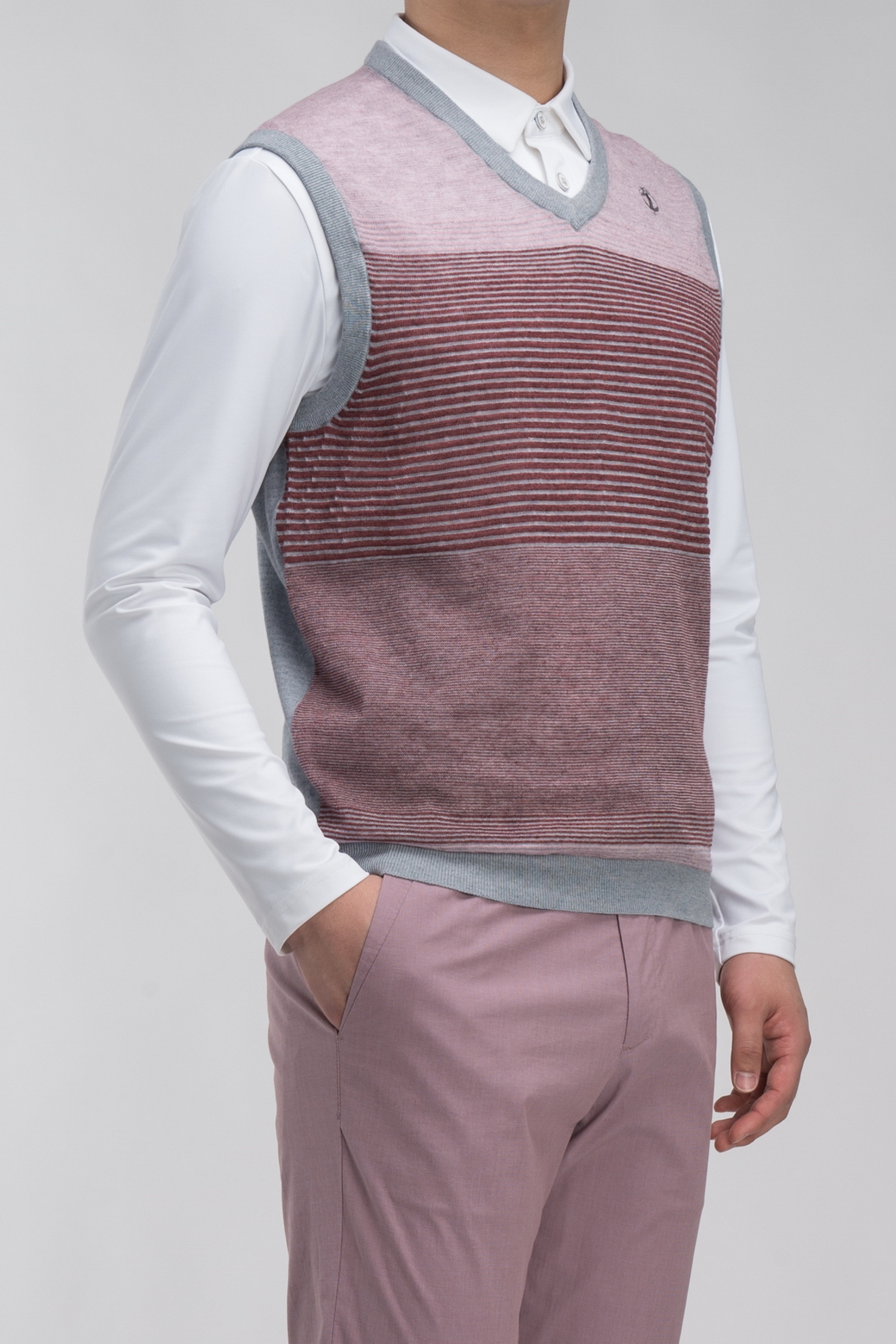- 앞판의 스트라이프 패턴의 세련된 남성 베스트.