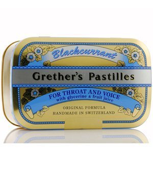 Studio : Grether's Publisher : Grether's Binding : Misc. Product Description Throat-soothing and palate-pleasing, these candies date back to 1930, but they have many current fans, including former President Clinton. Made with glycerin and vitamin C, they satisfy a sweet tooth, moisten a dry mouth, and can even ward off colds.They contain a high quality glycerin which helps keep the mouth and throat moist, protected, and soothed. Agar-Agar (derived from dulse) lends the pastille their silky consistency while the natural extracts of fruit give Grether`s Pastilles their great taste. Before the pastilles are packaged into the classic gold Grethers tins, they must be allowed to ripen for three months.Grether`s Pastilles are recommended for hoarseness, sore throats, croaky voice and dry mouth. People who have to use their voice a lot, e.g. through singing or extensive talking, benefit particularly from the calming, soothing and nourishing effect of Grether`s Pastilles. 0