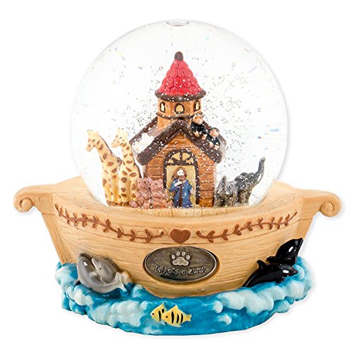 Noahs Ark Animals 100mm Resin Glitter Water Globe Plays Tune Talk to the Animals