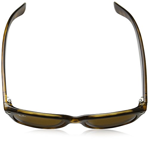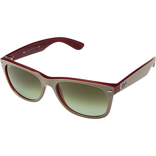 The updated classic Ray-Ban Wayfarer sunglasses have smaller lenses and a softer shape. Tortoiseshell frames and green lenses. Case and cleaning cloth included.