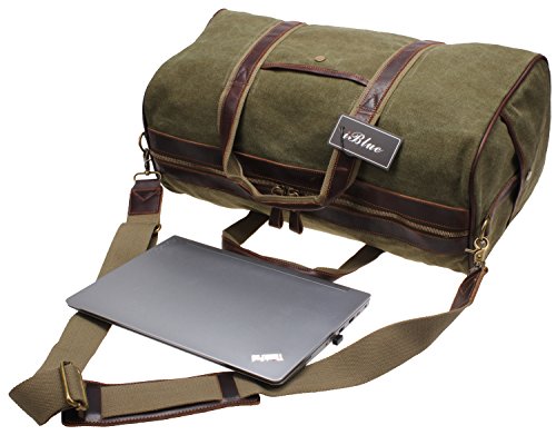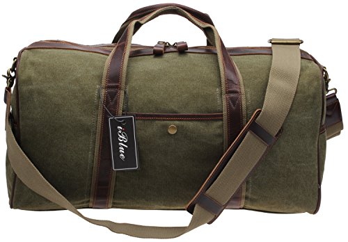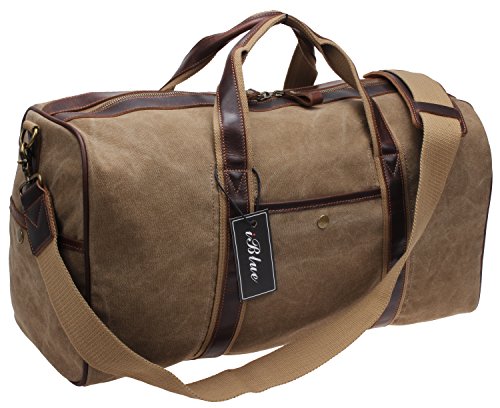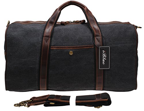 -. Title : Iblue Canvas Weekender Duffel Tote Leather Trim Travel Lage Sports Gym Bag 21in #i521