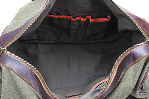 -. Feature : ✔Quality Material- Double Thick Large Zippers, High Density Heavy And Durable Canvas With Trim Dark Brown Leather, Strong Double Trim Stitching. / ✔Classic Travel Duffle Bag- The Product Dimensions Is 21In L X 3.1 In W X 10.6 In H, This Bag Is Perfect For Overnight Trips, Weekend Getaways Or Vacations. It Features A Detachable And Adjustable Thick Canvas Braid Strap With Wide Padded For Crossbody Or Over The Shoulder Wear. / ✔Multiple Pockets- Two Outer Pockets(9in L X 6.2in H)On Either End Of The Bag. These Pockets Have A Snap To Close Them That Is A Brass Color Just Like The Rest Of The Hardware That Comes On This Bag. One Open Pocket(7.8in L X 7.4in H )On The Front.The Pockets Would Be Perfect To Store Items That You Would Want To Use And Have Easy Access To During Your Travels. Such As A Phone Charger, Passport, Plane Tickets, Water Bottle, And Even A Little Snack In These Pockets. / ✔Large Capacity - The Large Compartment Of The Overnight Bag Can Put A Laptop, Ipad, Notebooks And Clothes; Two Medium Inside Pockets Can Store Your Items Without Having Them Roll Around Inside The Large Compartment; Two Open Pockets For Organization; Two Pen Holder. The Overall Exterior And Interior Of This Bag Is Very Well Made And Fashionable. / ✔Multi-Functional Bag - It Would Also Work For A Business Garment Bag, Canvas Duffle Bag, Weekend Bag, Sports Bag,Carry On Lage,Gym Tote Bag, Camping Bag, Overnight Bag Or Any Bag You Need To Store Items In For The Day In Any Casual Use. A Wonderful And Practical Gift Or Present For Valentine'S Day,Father'S Day,Teachers' Day,Thanksgiving, Christmas, Birthday Or Almost Any Other Occasion.