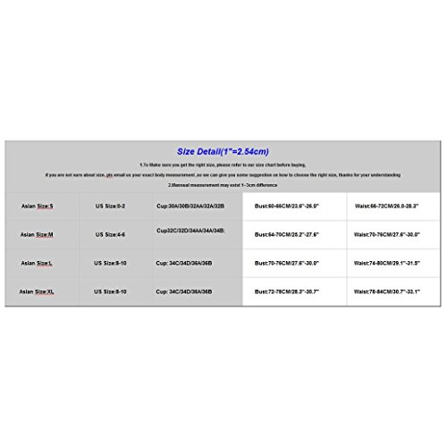 Binding : Apparel Product Description Package include: 1Set Swimwear (Containing Chest Pad) NOTE: Please compare the detail sizes with yours before you buy!!! Use similar clothing to compare with the size HOW TO MEASURE FOR TOP Your Band Wearing a non-padded, non-minimizing everyday bra, measure just above the bust by bringing a soft measuring tape across your back at band level, under each arm (elbows down), then around the front to snugly but comfortably line up with where your bra straps meet your cups. TIP: Odd number or on the half inch? Round down to the nearest even number. TIP: Did you measure yourself below the bust instead? Follow our guidelines for above-the-bust measuring before entering your Band Size into the Perfect Fit Calculator. Your Bust Measure across the fullest part of the bust by threading a soft measuring tape across your back at band level and under each arm, being careful that your elbows are down and that the tape isn't pulled away from the body in the front. With the tape in position, take a breath in and out, allowing it to slide to its most comfortable, non-binding fit. TIP: If the measurement falls on the half inch, round up. HOW TO MEASURE FOR BOTTOM Waist Measurement Bend to one side to find natural indentation in torso. This is your natural waist. Run tape around natural waistline, keeping tape parallel with floor and one finger between body and tape for a more comfortable fit. Hip Measurement Stand on a level surface with feet together. Measure around fullest part of hips and bottom (approximately 7"-9" below waistline), keeping tape parallel with floor. 0