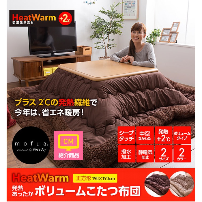 원본상품명: 送料無料mofua(R)Heat Warm?熱あったかボリュ?ムこたつ布?(撥水加工) 190×190cm(天板正方形80cm×80cmタイプ)