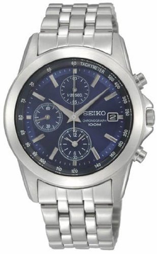 -. Title : Seiko Stainless Steel Blue Dial Chronograph Mens Watch SNDC07