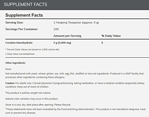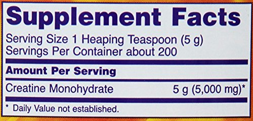 Creatine Monohydrate is a naturally occurring compound found in the human body and obtained in the diet primarily from meat and fish. Creatine is a popular supplement among active individuals because of its ability to serve as an energy reservoir, especially during intense physical exertion. During short, intense bursts of activity, the body breaks down adenosine triphosphate (ATP) into adenosine diphosphate (ADP) and phosphate for energy. Creatine helps the body convert ADP back to ATP, providing greater amounts of ATP for energy, which may increase short-term endurance and strength. Creatine can also be stored for later use by cells, creating the "energy reservoir" active individuals desire.* NOW® Creatine Monohydrate is 100% pure and contains no additives or preservatives. Creatine may be especially useful for those doing short-term, intense exercise, such as weight lifting, football, basketball, swimming, skiing and cycling.Feature