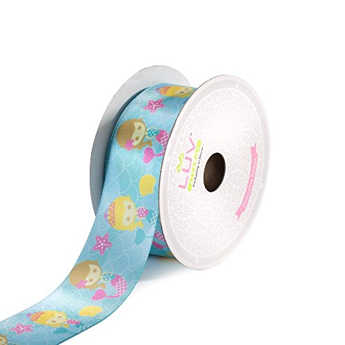 LUV Ribbons 1 1/2-Inch Satin Sweet Little Mermaids Ribbon, 10 Yards, Blue