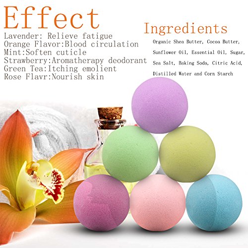 ZesGood Bath Bomb Gift Set includes Lavender - Relieve fatigue, Orange Flavor - Blood circulation, Mint - Soften cuticle, Strawberry - Aromatherapy deodorant, Green Tea - Itching emolient and Rose Flavr - Nourish skin.