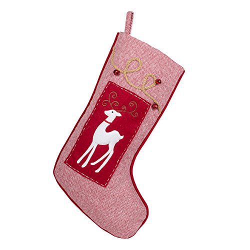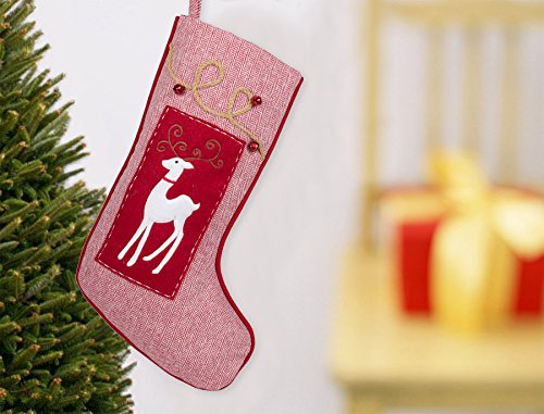 19 inch Reindeer Buttons and Rope Natural Burlap and Applique Christmas Stocking