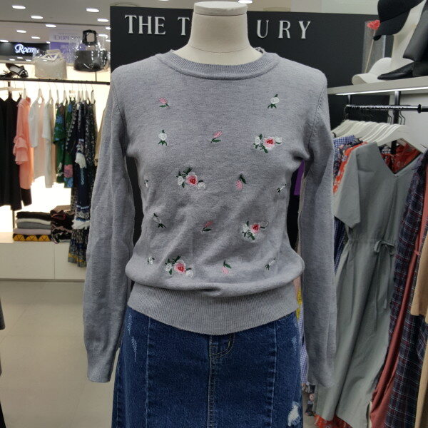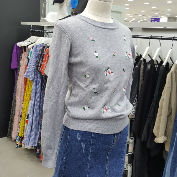 이기자기한 느낌의 플라워자수 패턴이 특징작인 니트입니다 이크릴 소재를 사용하여 부드러운 터치감을 선사하는 디자인에 니트입니다
