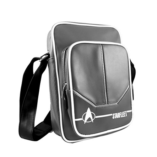 STAR TREK STARFLEET TABLET MESSENGER FLIGHT BAG Officially Licensed Product! Fits most standard tablets Durable construction with padded, cross-body shoulder strap One main zippered compartment in addition to second smaller zippered compartment Bag measures approx. 12 inches tall by 9 inches wide Sturdy Padded Adjustable Shoulder Strap for a comfort fit! New With Tags