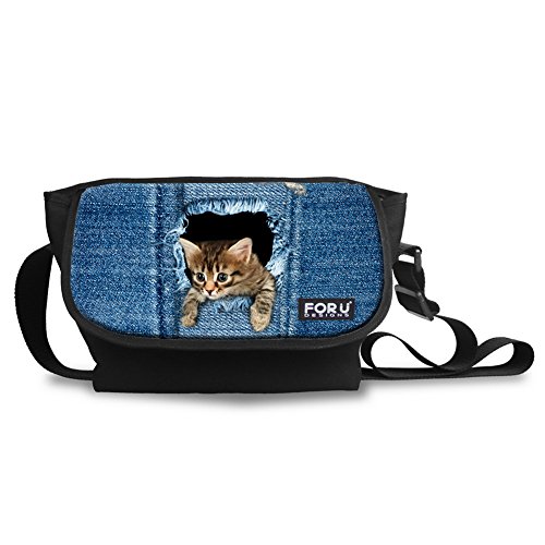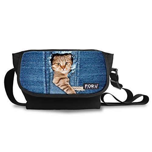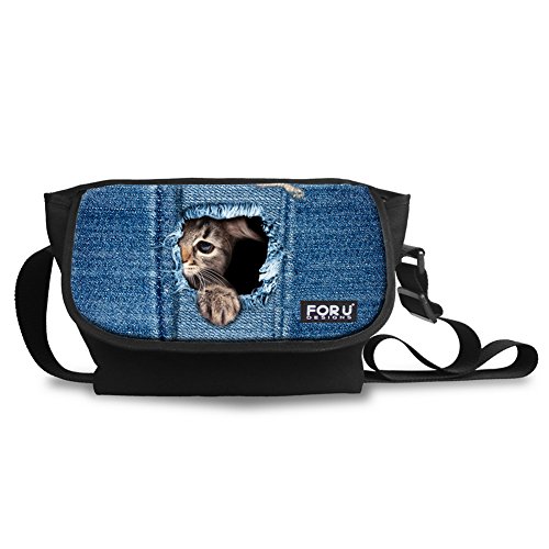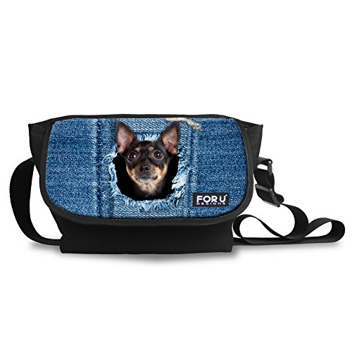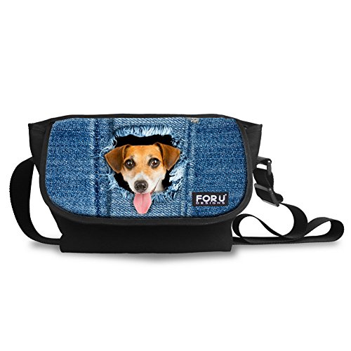 Product Description The canvas shoulder messenger bag features with a interior pouch easy to put your cards or pocketbook in it, a interior tablet compartment for at large 10 inch tablet or a kindle and a large main compartment. It's made of canvas,lightweight to carry it around,and non-deformation to keep it for a long term.By adjusting the shoulder straps, you can comfort yourself at a suitable length. The zipper and VELCRO closures have twofold impacts on anti-lost. The best of all is its creative personalized design.It can be either animal friendly or fully fantasy,which make it perfectly match all walks of people and occasions. As a gift,it is a solid choice as well. Approx Dimensions: 14.56'(Top) 9.84'(Bottom) x6.29'(W) x8.26'(H) 0