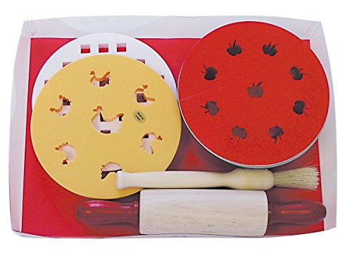 - Includes: Four 5" pie pans, 1.5" diameter rolling pin, 7.25" long round brush