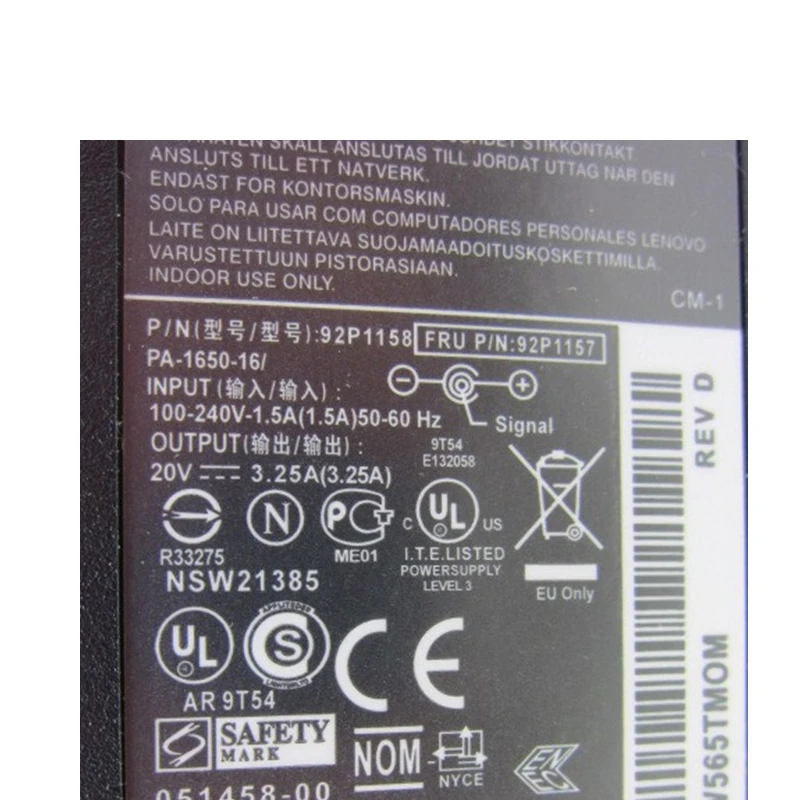 Model Number:20V 3.25A 65w for IBM Lenovo