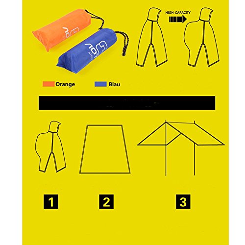 -. Feature : 3-IN-1 REGENCAPE: Multipurpose poncho specially designed for outdoor activities, can be used as a raincape, blanket or sun sail for walks, picnics, angling trips and more / PROTECT YOUR BACKPACK: Prevent your backpack or back wetting from the rain even you are riding on a bicycle due to the special designed to accommodate the protrusion of the bag. / REINFORCED WATER RESISTANCE: Made of 210 T high density polyester fabric; All seams are sealed; Water resistant PU with 3000 mm water column / COMPACT AND PORTABLE: Can be folded to a compact size of 21 cm x 8 cm x 5 cm, weighs only 265 g for easy carrying and fits easily into your backpack, glove compartment or pocket. / SPECIAL DESIGN :The back of the poncho specially designed to accommodate large bags of the protrusions, but also can be hidden inside the poncho, the sides are secured by Velcro, the neck can be adjusted tight, it is easy to wear off.