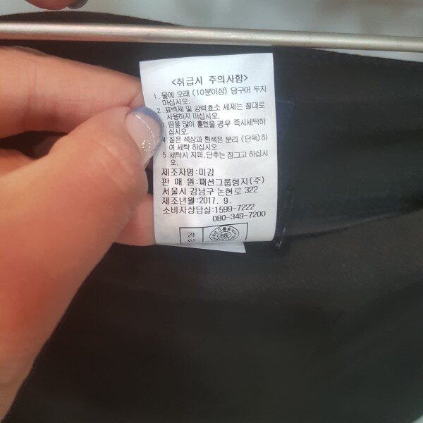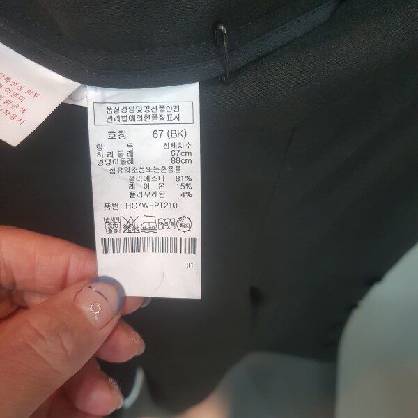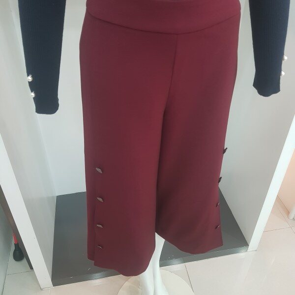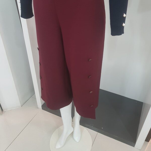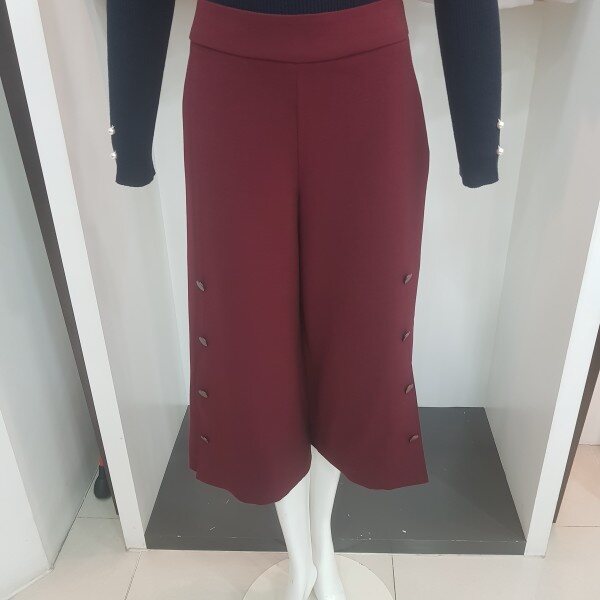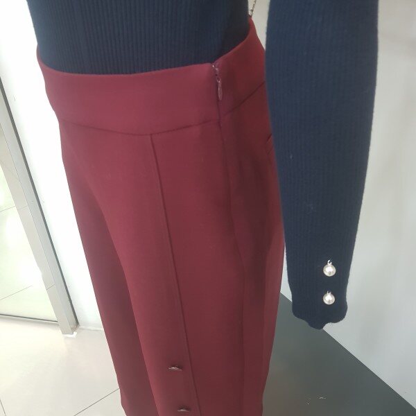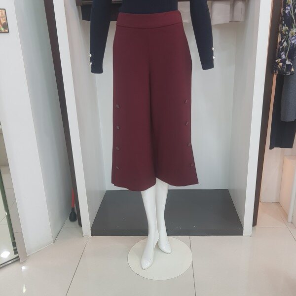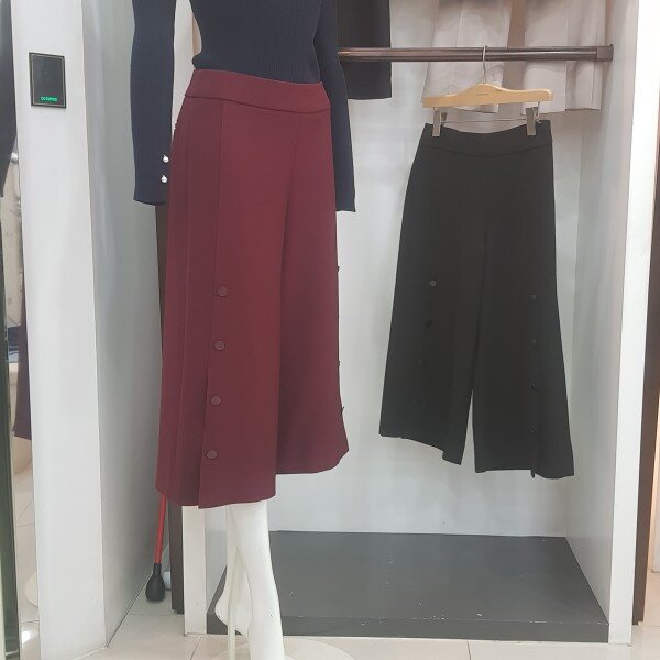정장 와이츠팬츠에 옆라인에 단추로 포인트 준 A라인와이즈팬츠