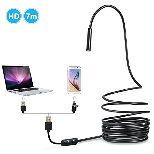 USB Endoscope, Depstech 2 in 1 Semi-rigid Borescope Inspection Camera 2.0MP CMOS HD Waterproof Snake Camera with 6 Adjustable Led for Android Device, Windows & Macbook OS Computer - Black(23FT)