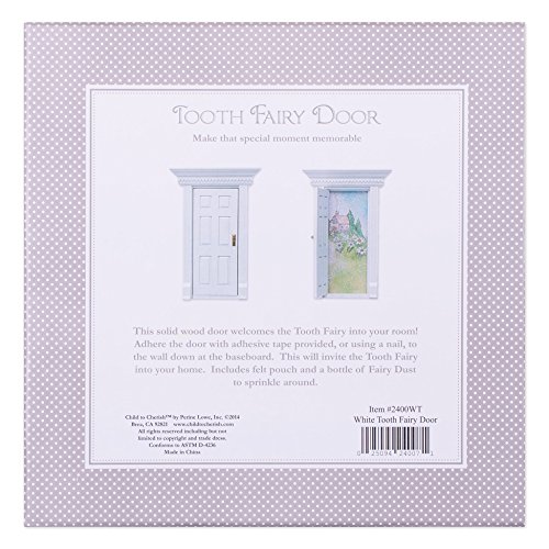 -. Feature : Solid Wood Door Welcomes Tooth Fairy into Bedroom! / Adhere with Adhesive Tape Provided to Wall Above Baseboard / Includes Felt Pouch and Bottle of Fairy Dust / Door Measures Approx. 8.5"H x 3.75"W x 1"D