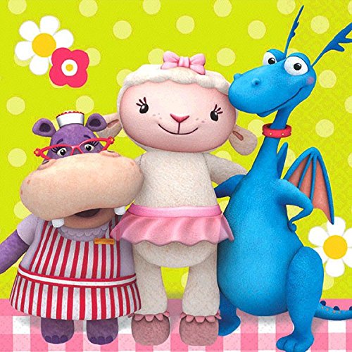 Doc McStuffins Beverage Napkins Birthday Party Tableware (16 Pack), Multi Color, 5" x 5".