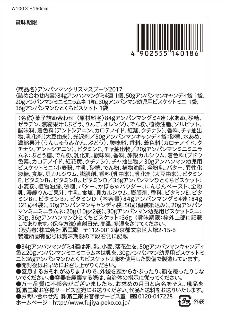 (84 g Anpanman gumi 4 strands, 50 g Anpanman candy bag, 20 g Anpanman mini-mini ramune, 30 g Anpanman baby biscuit mini, 36 g Anpanman Hitachi biscuit) Christmas boots designed greatly for Anpanman and fellows are perfect items for children's Christmas gifts