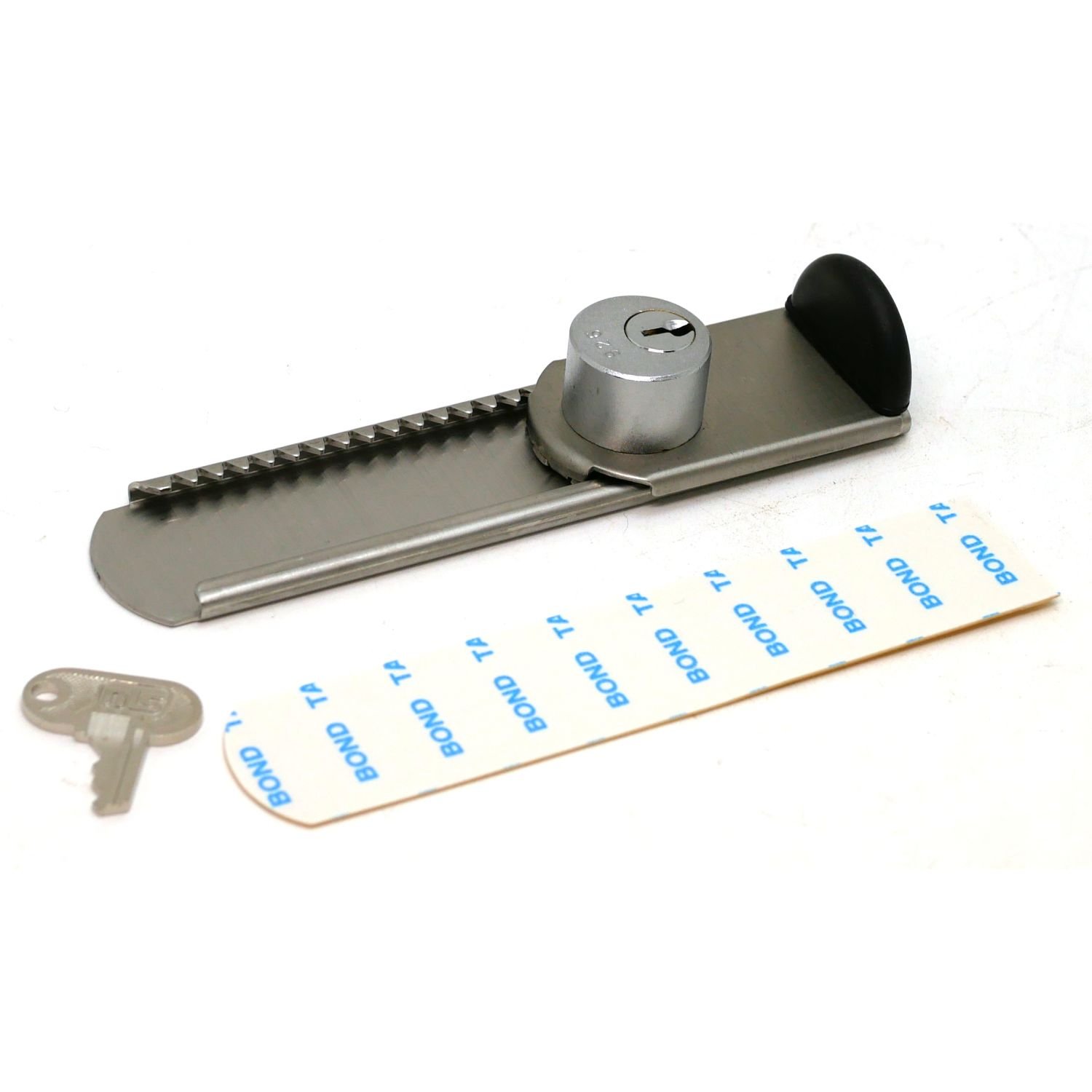 Supplementary lock for keyed windows that can be attached with strong double-sided tape