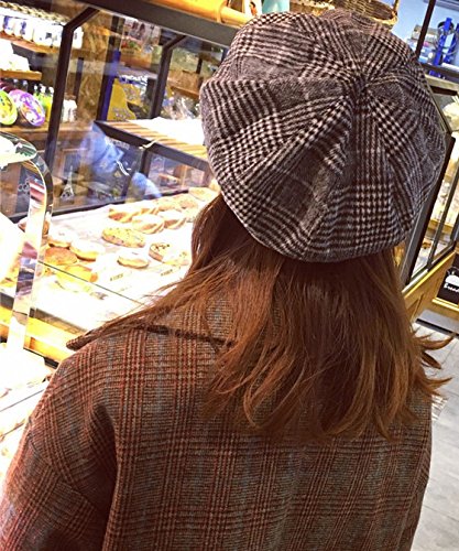 (wanture)/Accessories/Hats/DIRECT FROM USA/wanture Women's Beret British Style Vintage Grid Warm Woollen Cloth Cap