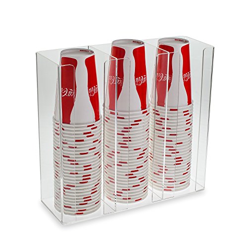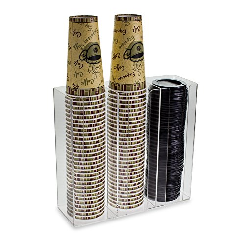Source One Deluxe Clear Coffee Cup / Lid Soda Fountain Organizer Wall Mount or Counter Top Use - 3 Sleeve