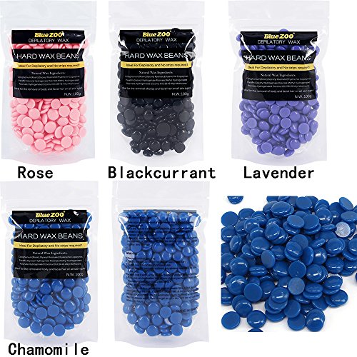 - WAX KIT INCLUDES: 500CC Wax Warmer(1 unit),10pcs wooden spatulas / applicators,4 packs of different favor Bluezoo hard wax beans (Chamomile,Rose, Lavender, Blackcurrant),10pcs wax paper(for clean heater pot)
