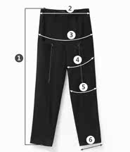 | 尺码 | ①裤长 | ②腰围 | ③臀围 | ④大腿围 | ⑤膝围 | ⑥脚围 | ⑦前裆 | ⑧后裆 | ||