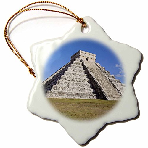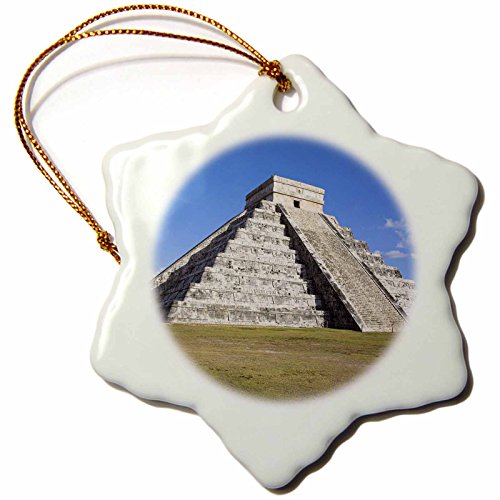 3dRose orn_46127_1 El Castillo, Pyramid of Kukulkan, Chichen Itza Archaeological Site Snowflake Porcelain Ornament, 3-Inch