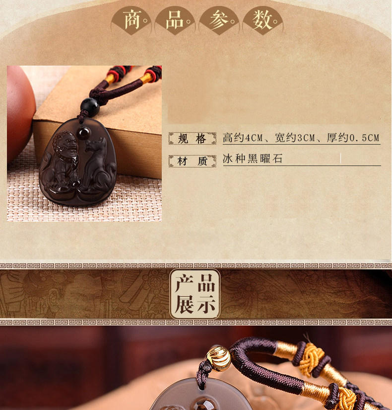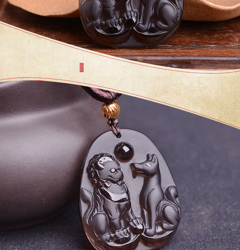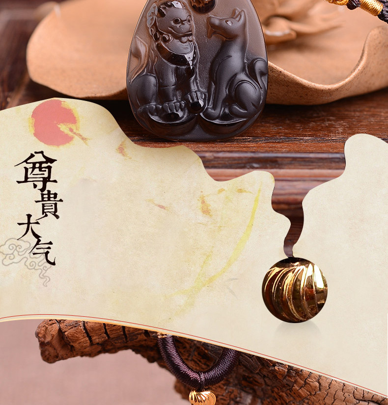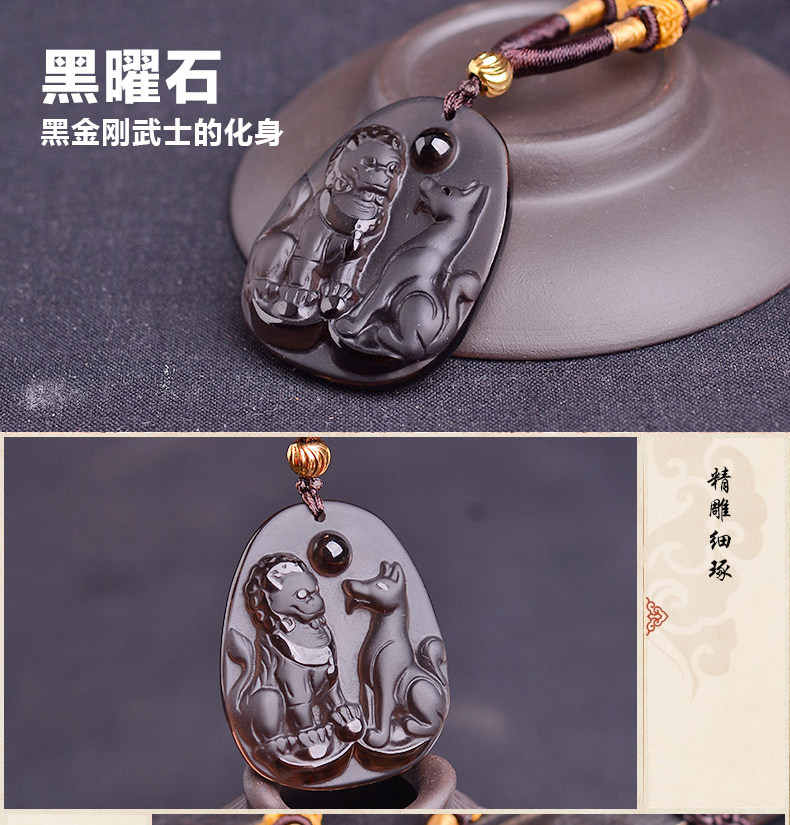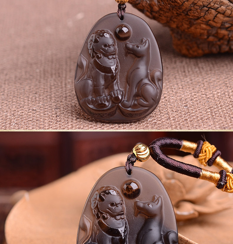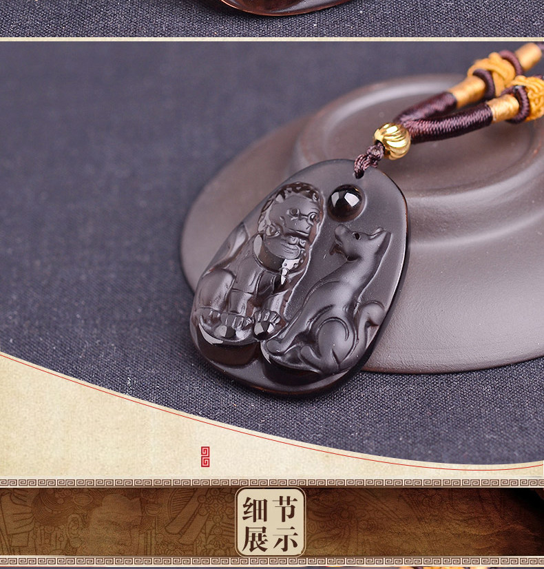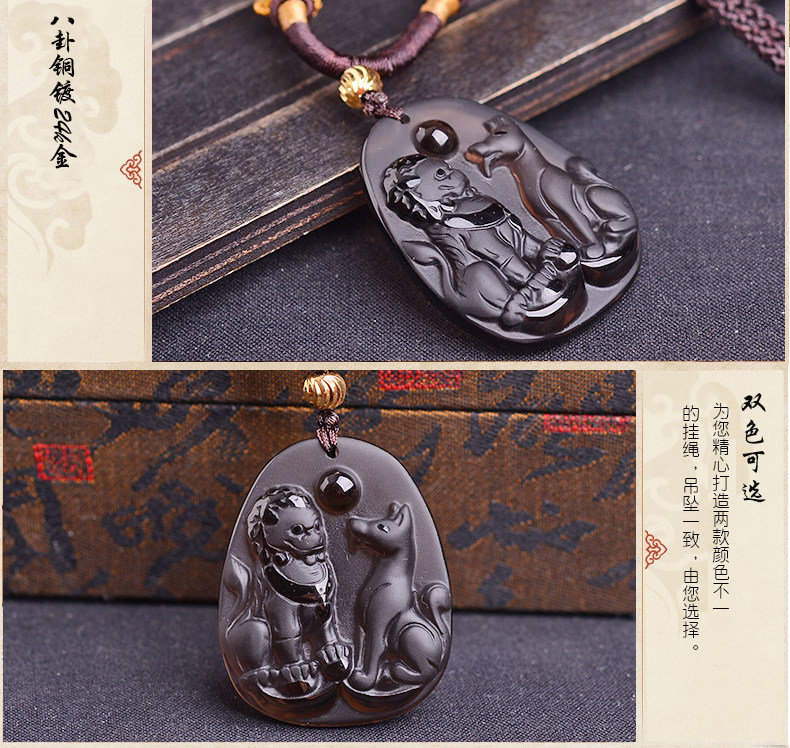 开光冰种黑曜石财福双犬属狗吊坠吉祥物狮兔送福男女项链