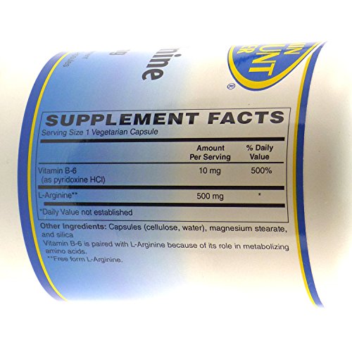 Studio : Vitamin Discount Center Publisher : Vitamin Discount Center Product Description L-Arginine is a conditionally essential basic amino acid involved primarily in urea metabolism and excretion, as well as DNA synthesis. In fact, l-arginine is converted in the body into a chemical called nitric oxide. Nitric oxide causes blood vessels to open wider for improved blood flow thus promoting a healthy vascular system. As a dietary supplement, adults take one (1) vegetarian capsule, two (2) to six (6) times daily between meals, or as directed by a health care professional. Store in a cool dry place and away from direct light. These statements have not been evaluated by the Food and Drug Administration. This product is not intended to diagnose, treat, cure, or prevent any disease. 0