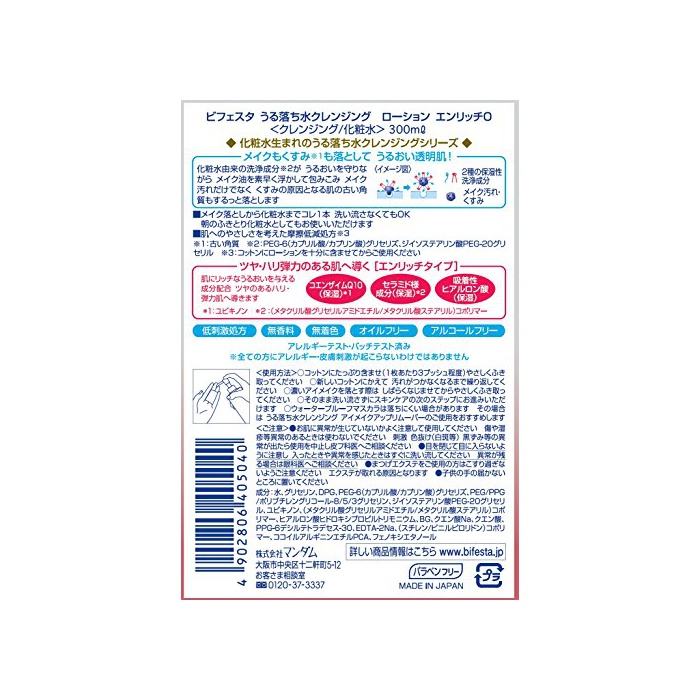 원본상품명: ビフェスタ うる落ち水クレンジング ロ?ション エンリッチ 300mL